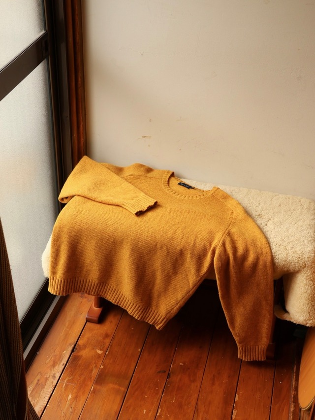 なんでもないようなニット でも、色味が最高、理想的な色してます そしてシンプルなクルーネックで、丁度良いリブのデザイン 身幅や着丈のサイズバランスも、良い意味で超普通で、着やすい この簡素さと、この色、ちゃんと良いニット生地、なかなか全部揃えたやつは出ないもんです 1番着るやつです 個人的には、今こんなんが1番欲しい スペイン製 ラナウール80 ナイロン20 裄丈 83 身幅 51 着丈 56