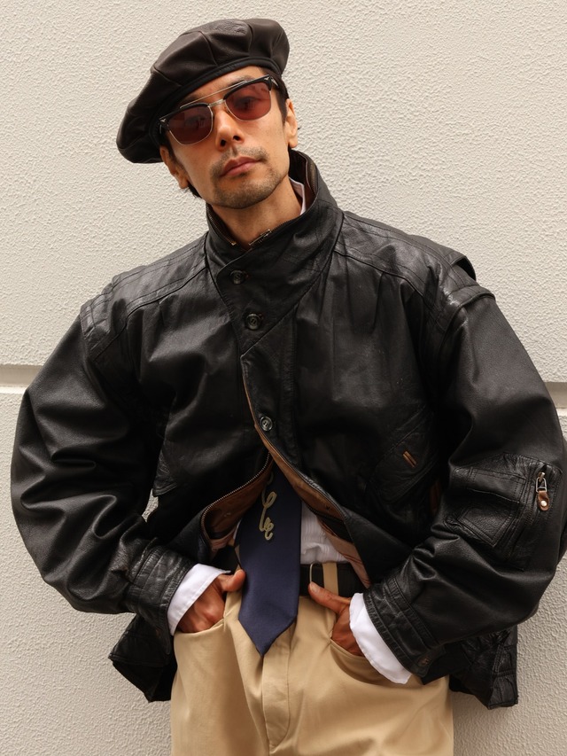 80sイタリア製のレザージャケット ただただ無骨になりがちな、このてのレザージャケットですが こちらはイタリア製らしく、 男らしさの中に、洒落っ気、色気を兼ね備えた優秀な個体 この時代のイタリア物はやっぱり一味違いますね レザーの切り替えや、ポケットのデザイン さらにデタッチャブルスリーブという 素晴らしいディティールたち 身幅やアームもたっぷりとられたシルエット 中に色々と着込んでも、ガバッと羽織れます なので秋から真冬まで活躍できるかと思います 肩幅 59 身幅 66 着丈 70 袖丈 60 着用モデル 176cm
