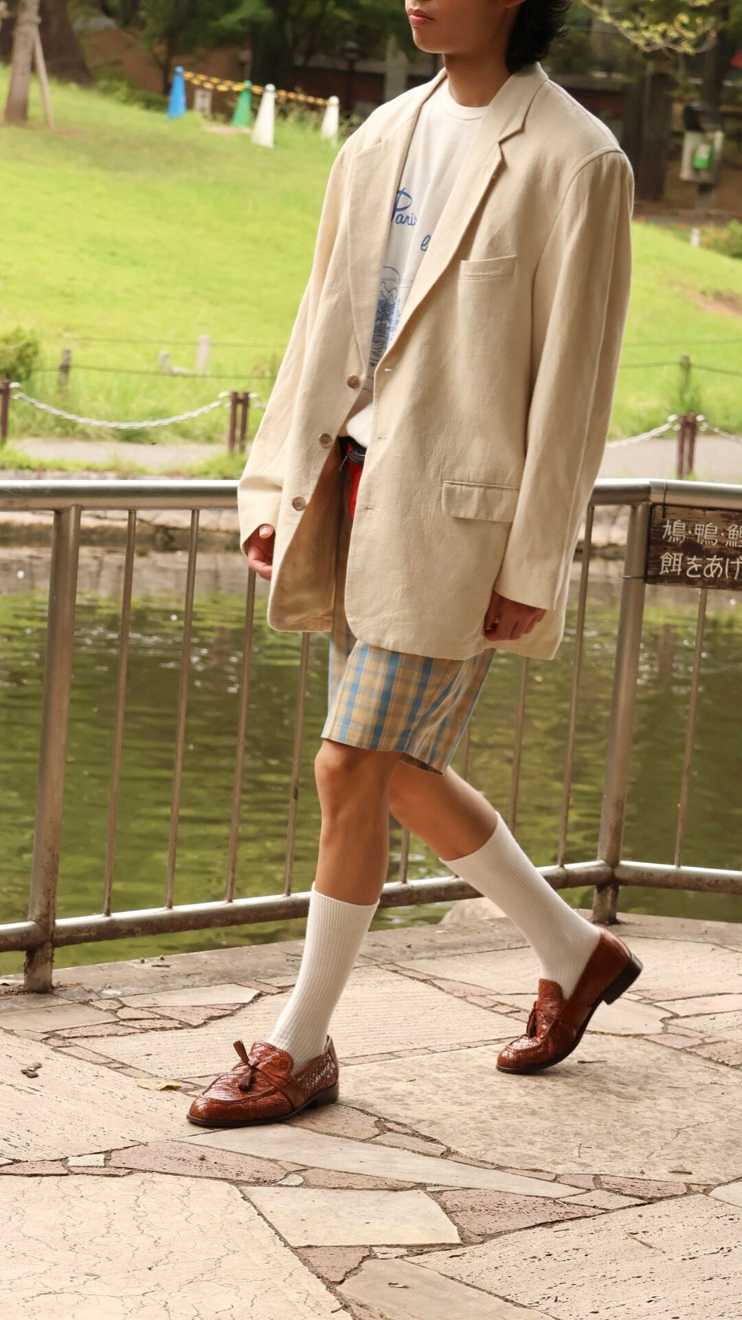 70s polyester × cotton check shorts