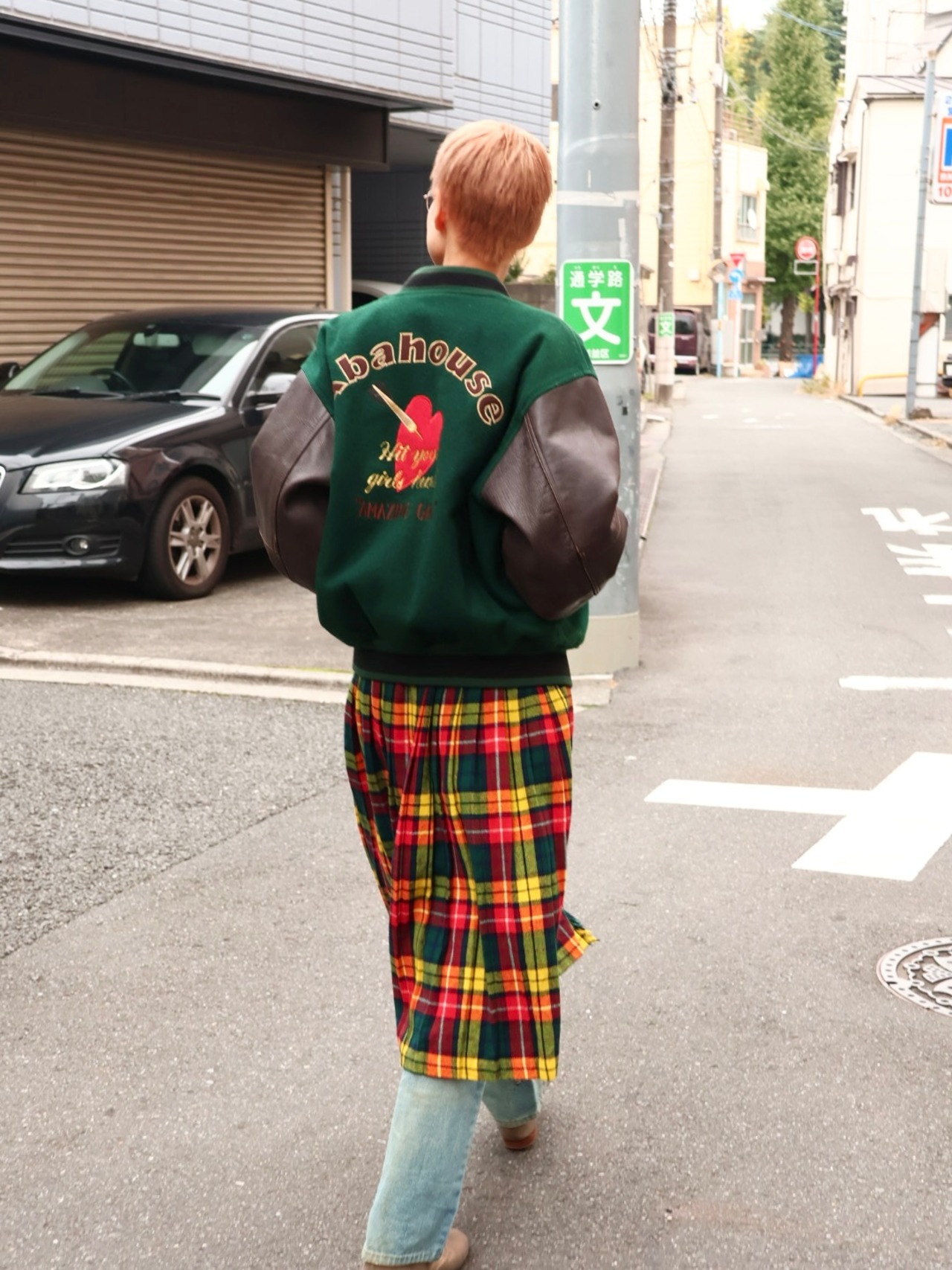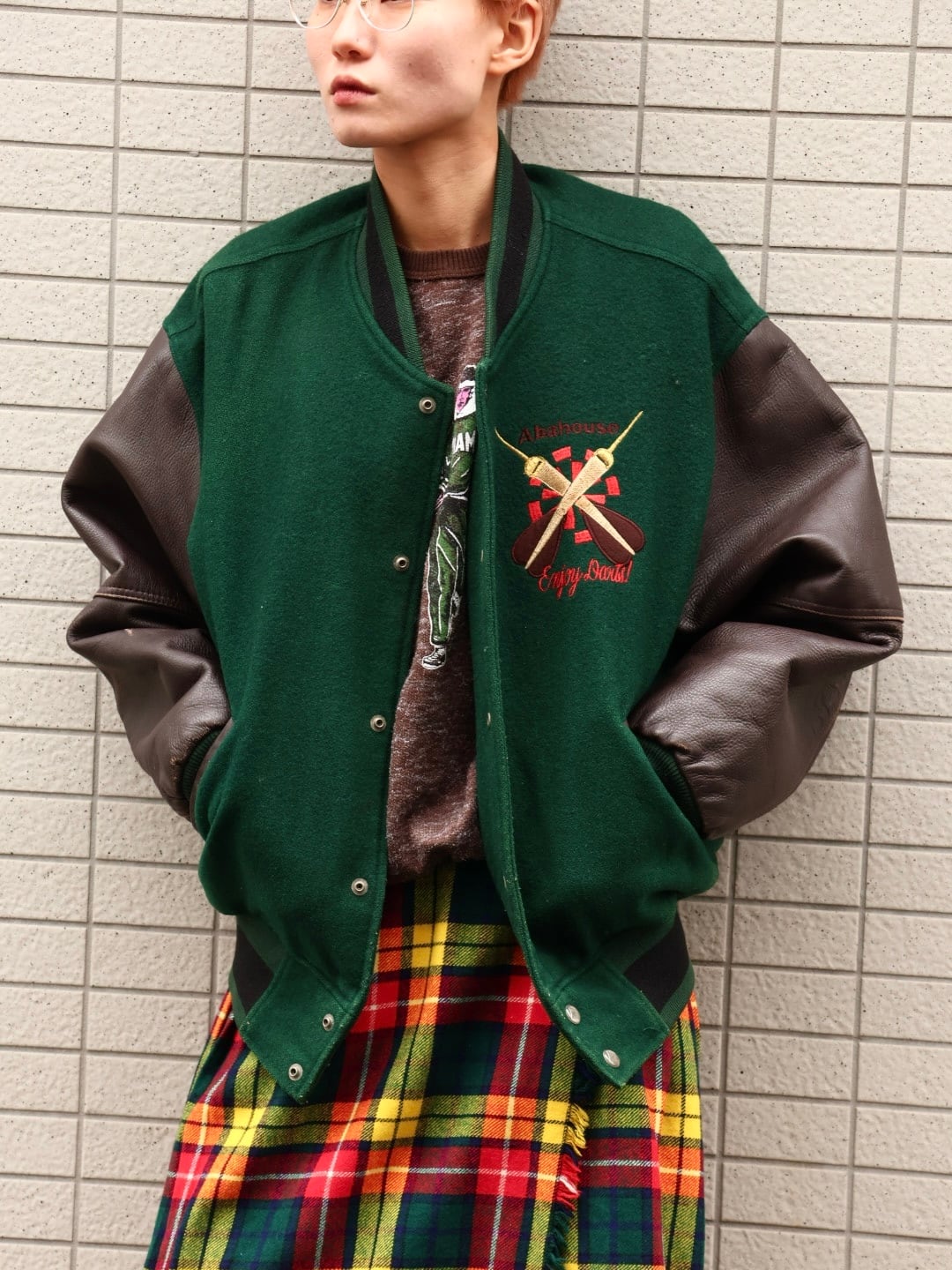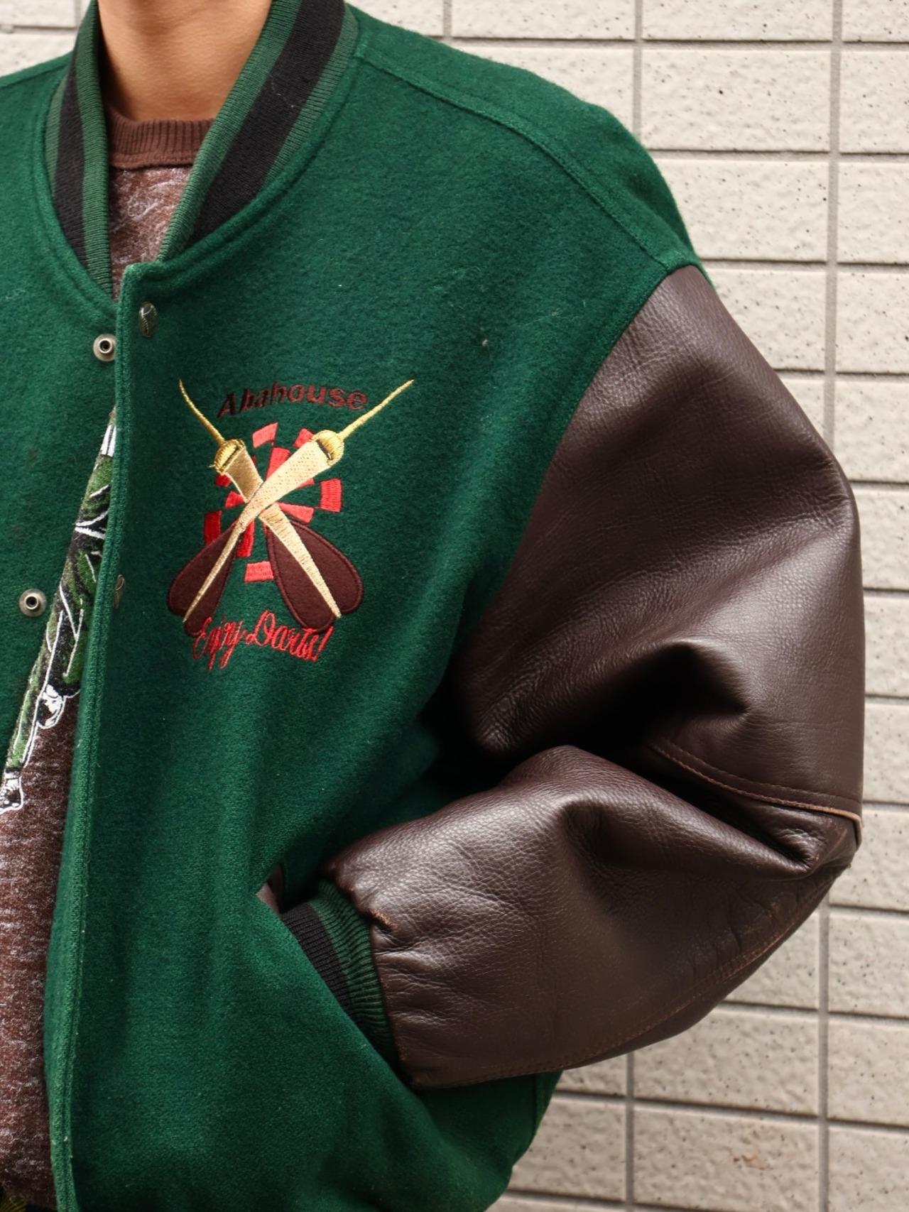 80sアバハウスのレザー袖スタジャン