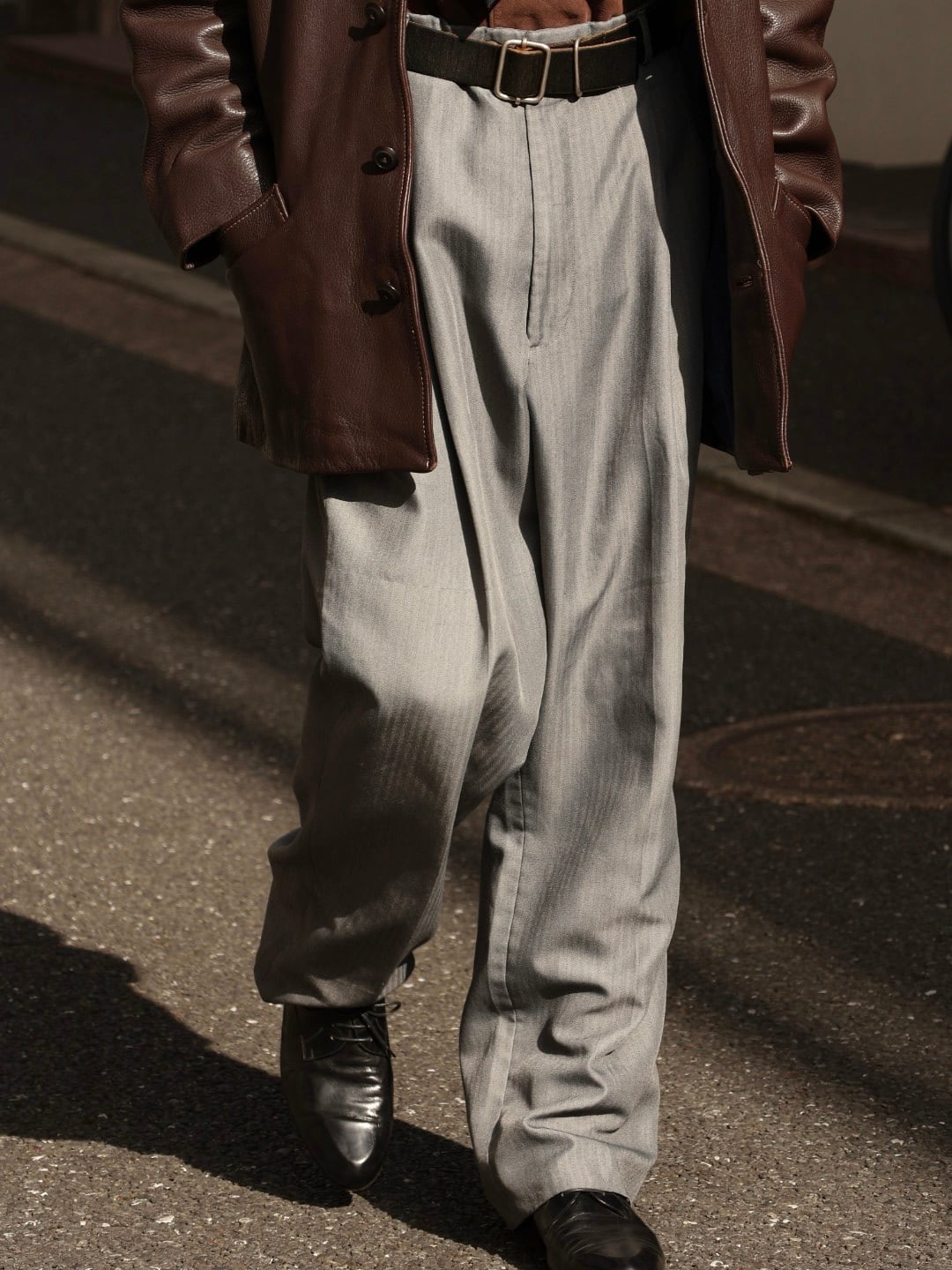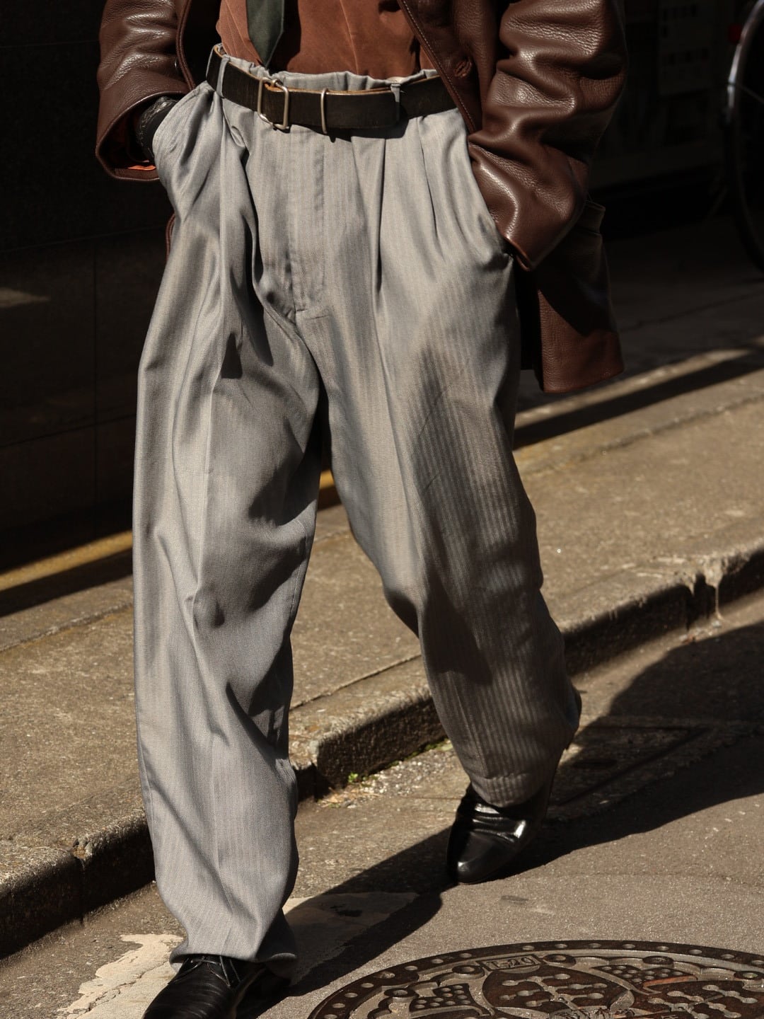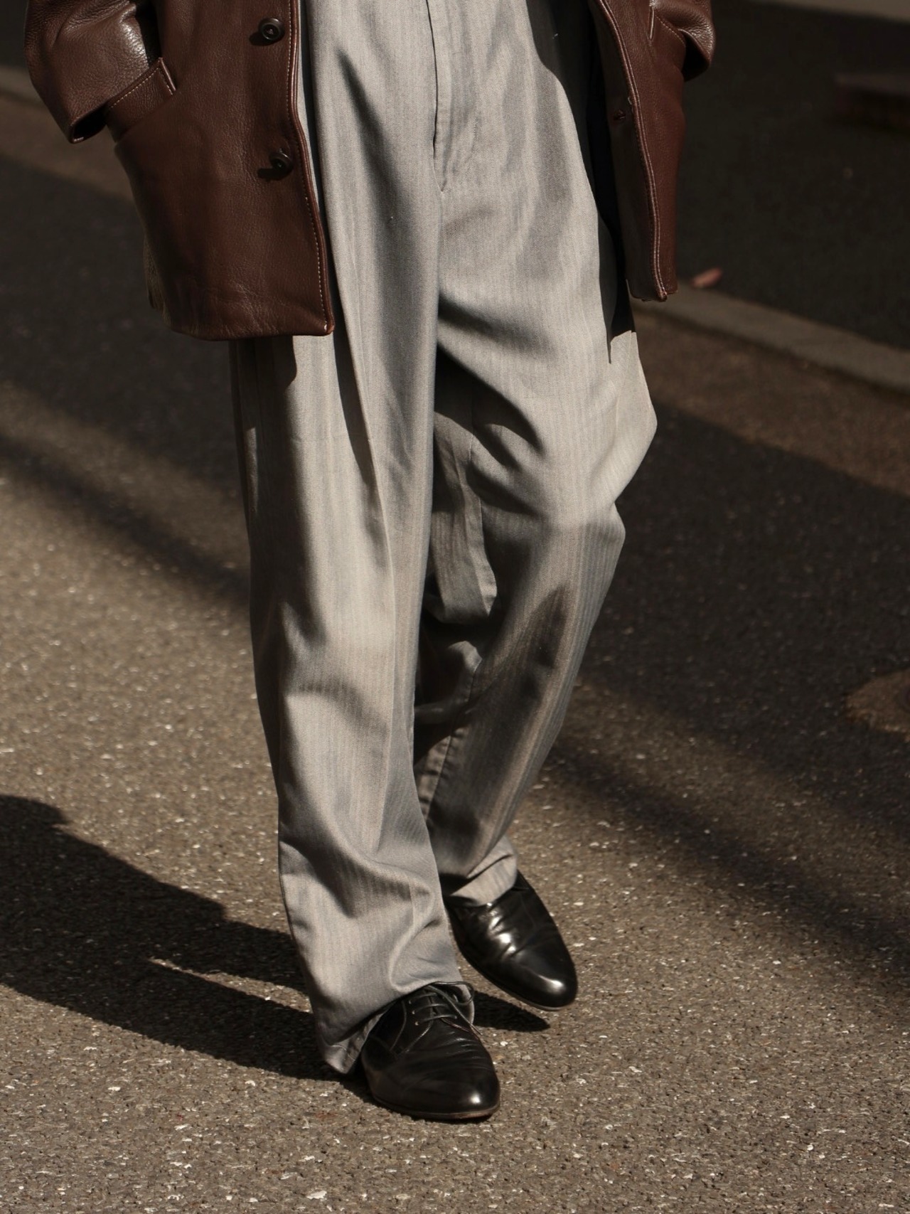 ギラついたグレーと、ドレープ感のある生地