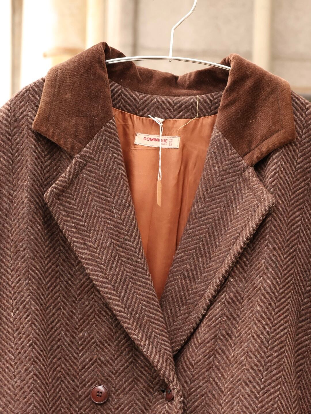 ブラウンのツイードと、ベロア素材の切り替え