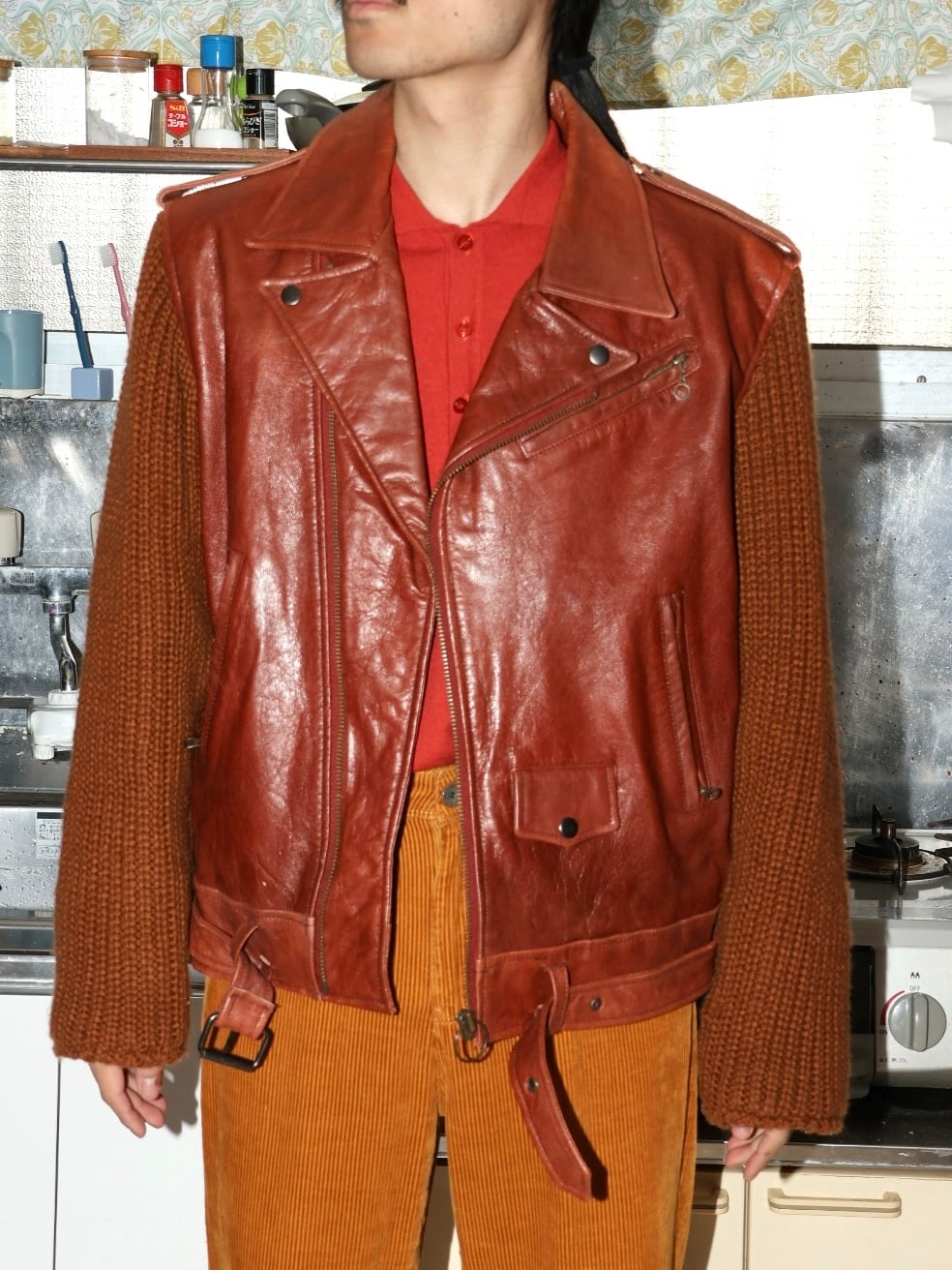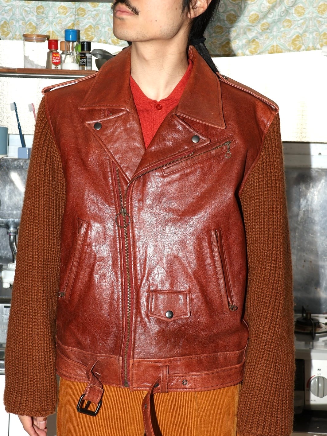 80〜90s leather × knit riders jacket