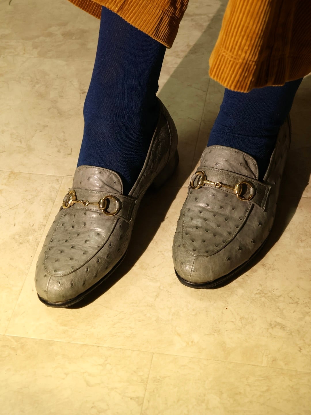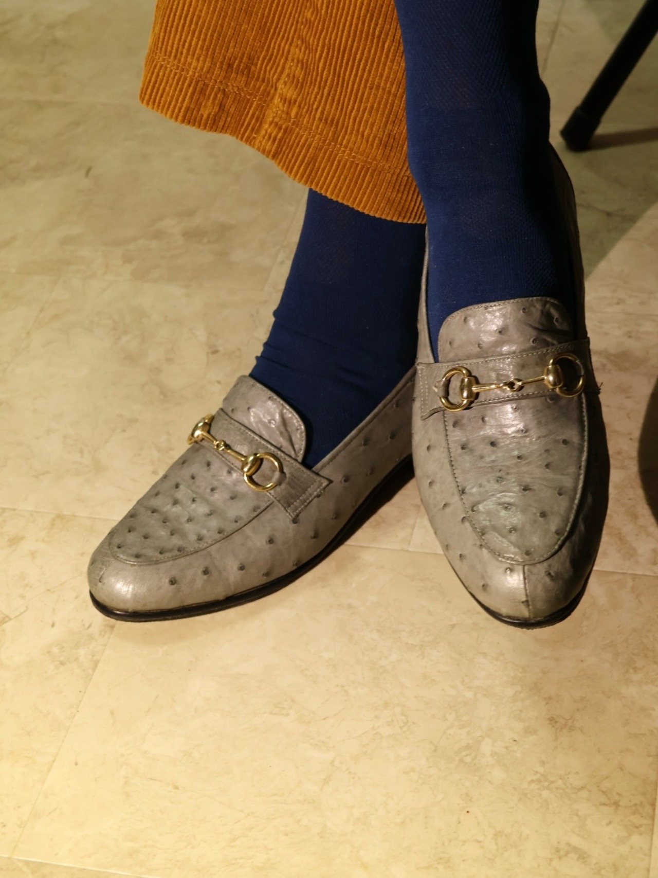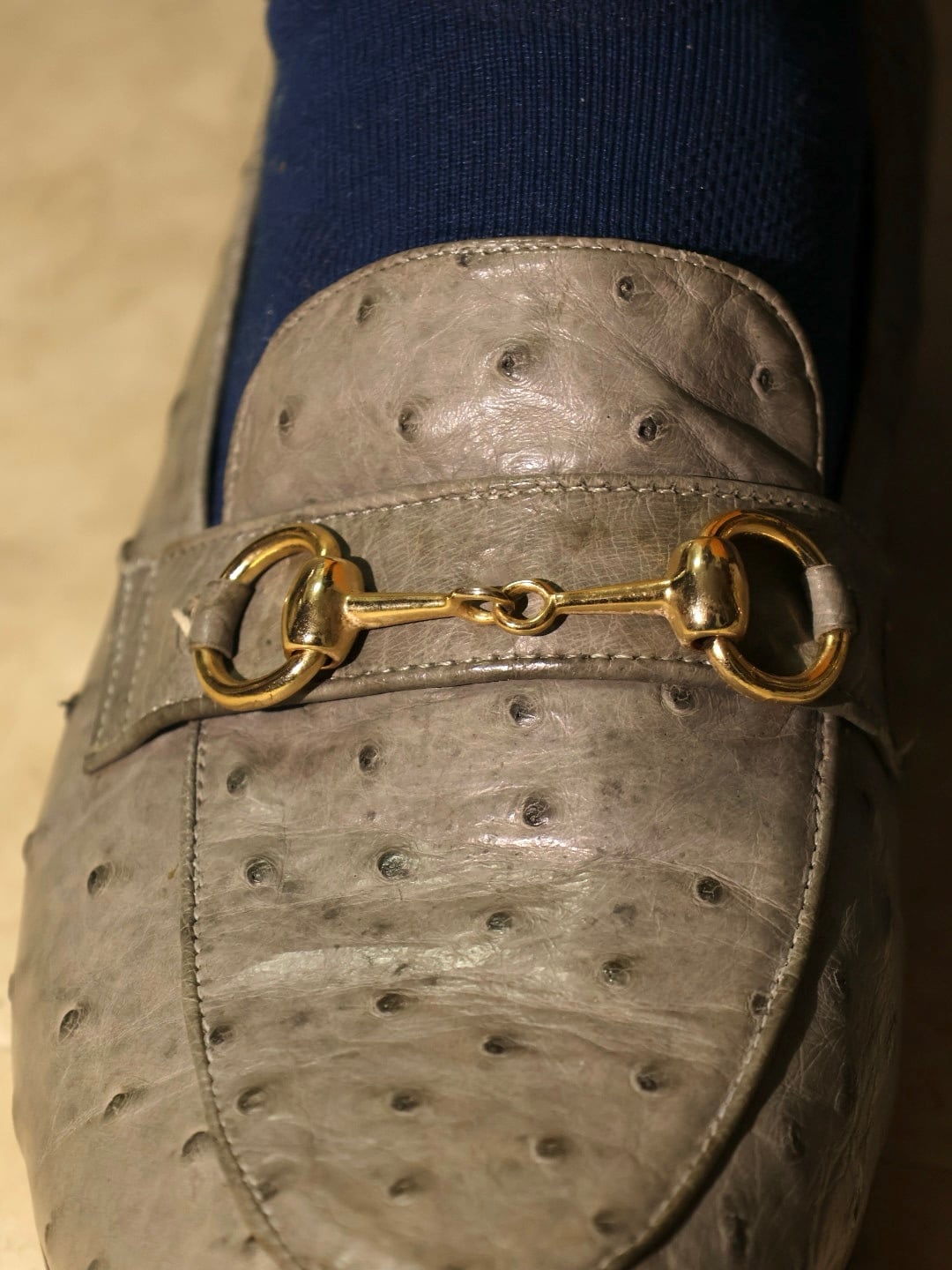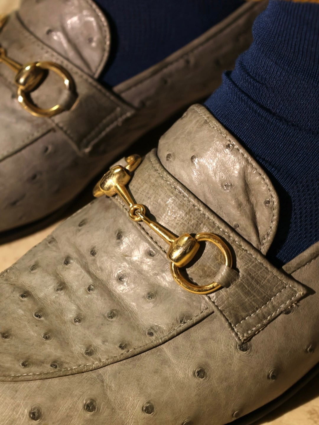 グレーレザーに、ゴールドのホースビットがめちゃくちゃ洒落ています