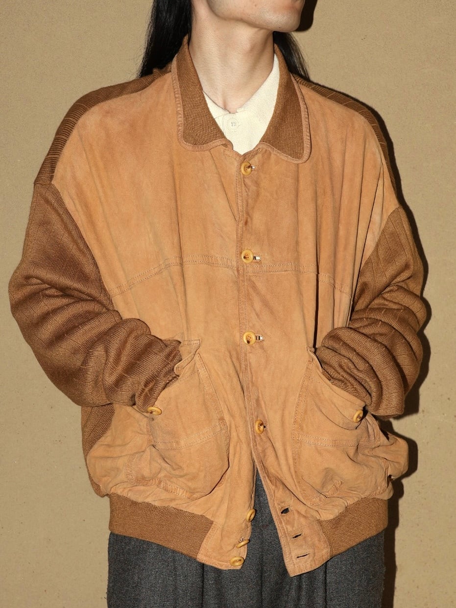 70〜80s leather × knit jacket
