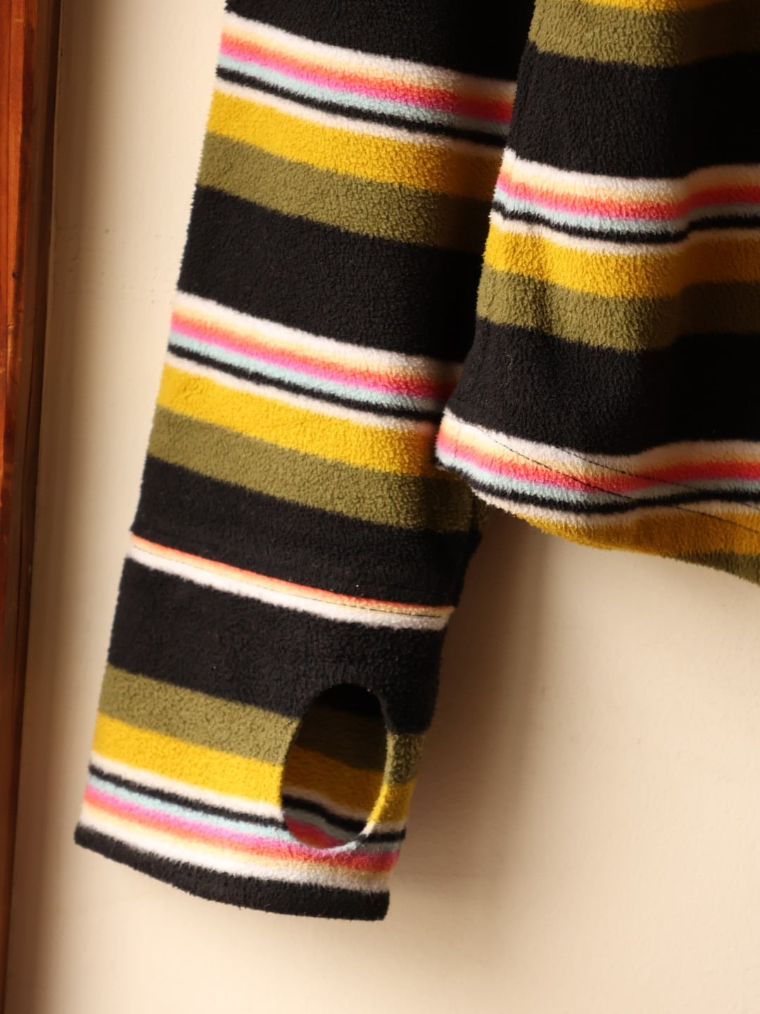 サムホール、モックネック、斜めについたスナップボタンなど