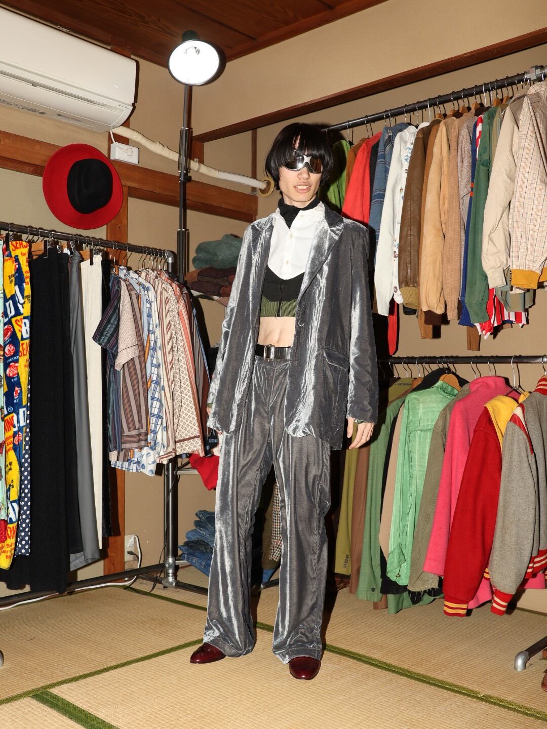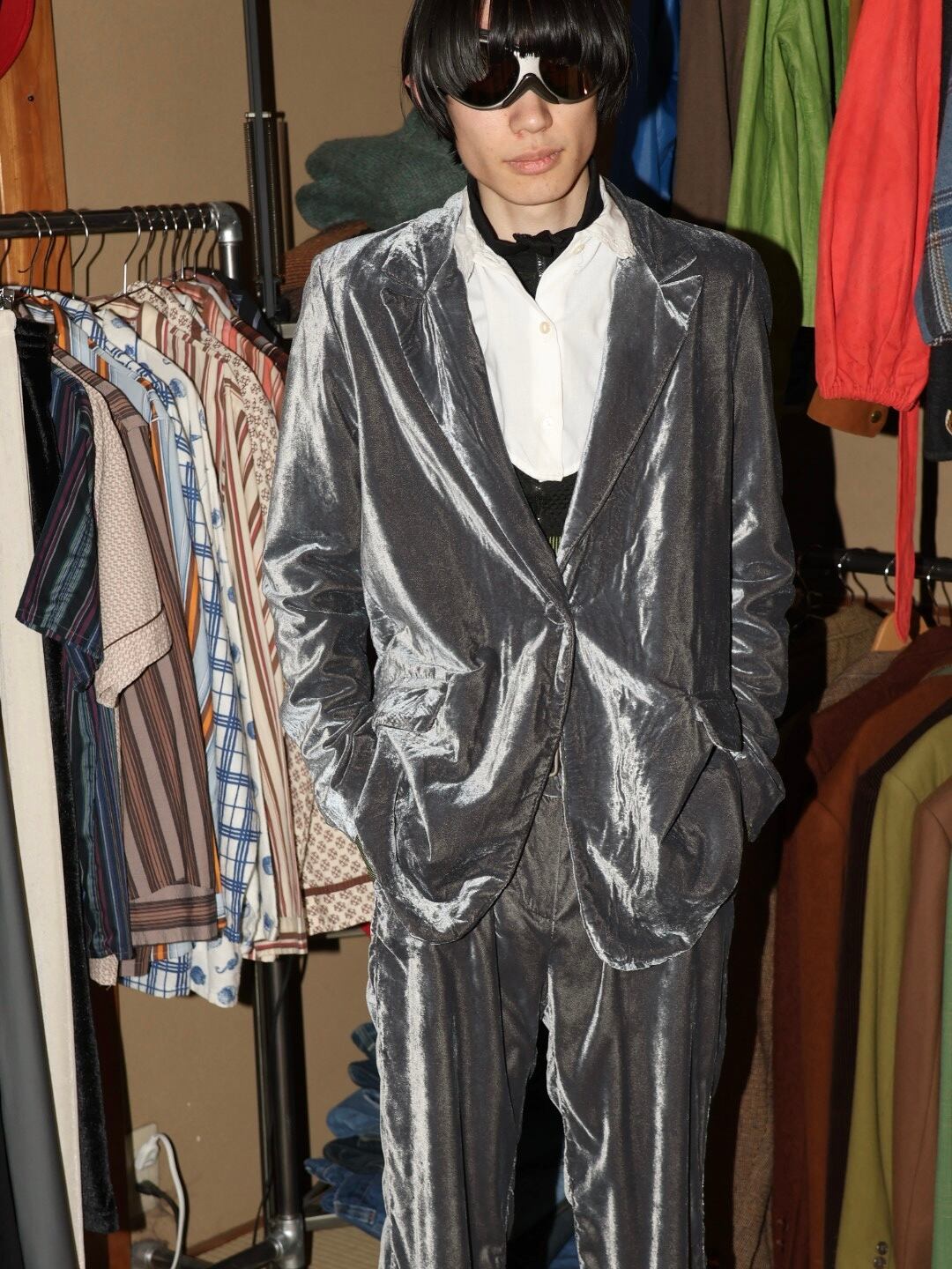 イタリア製のシルバーベロアのセットアップ