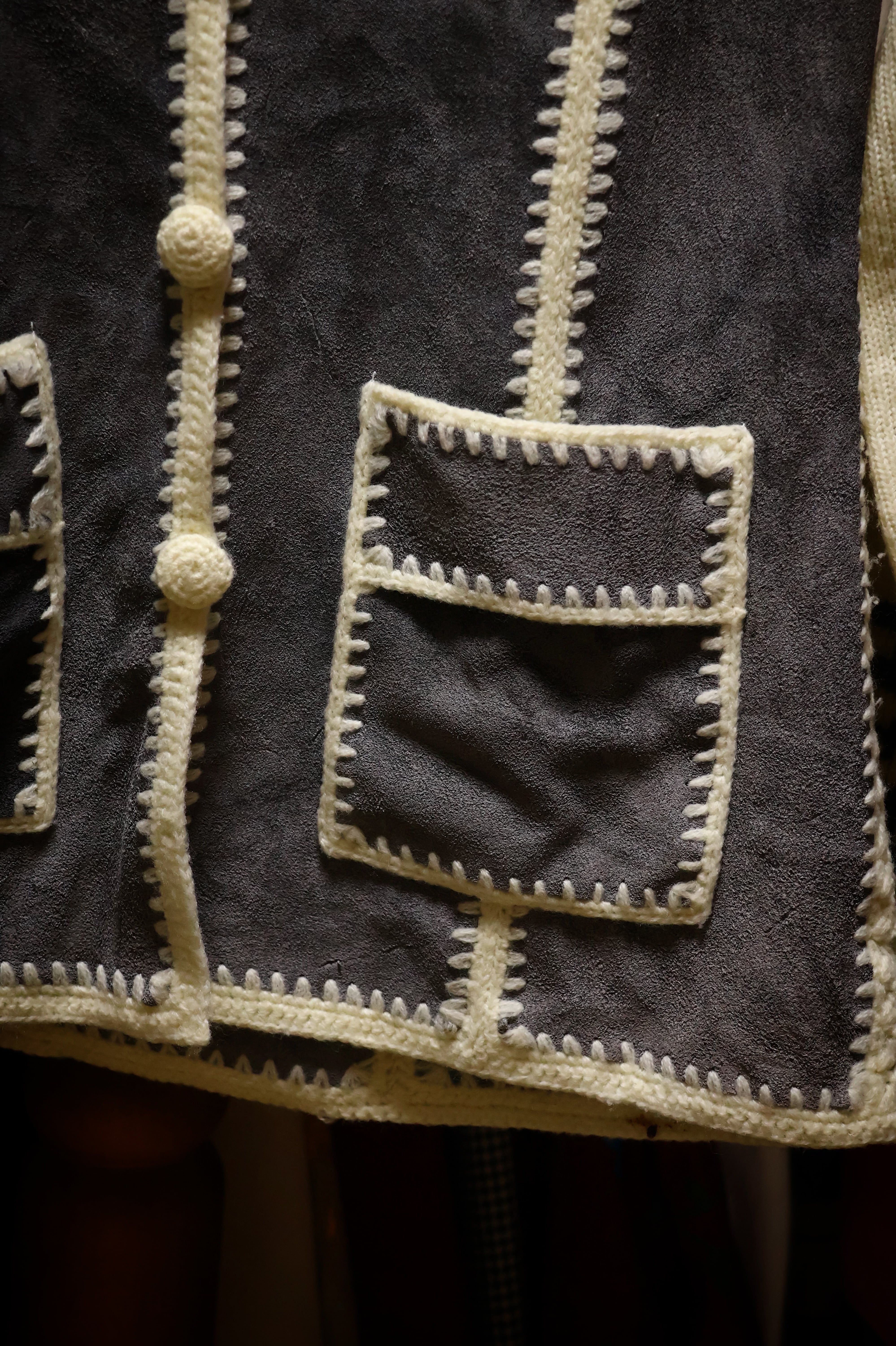 70s leather × knit cardigan