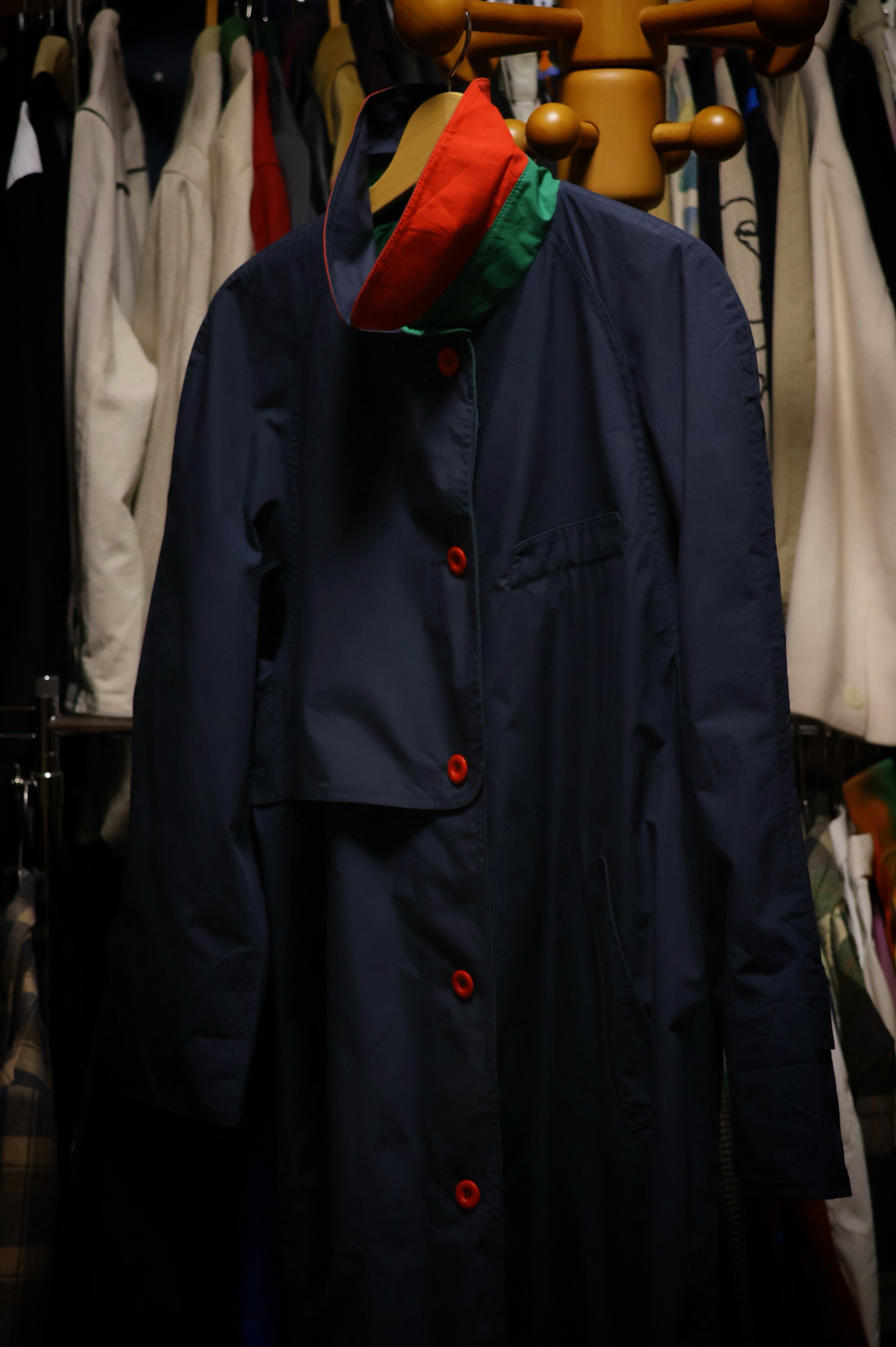 ぱっと見は大人しそうだけど、襟裏に狂気を秘めたステンカラーコート。