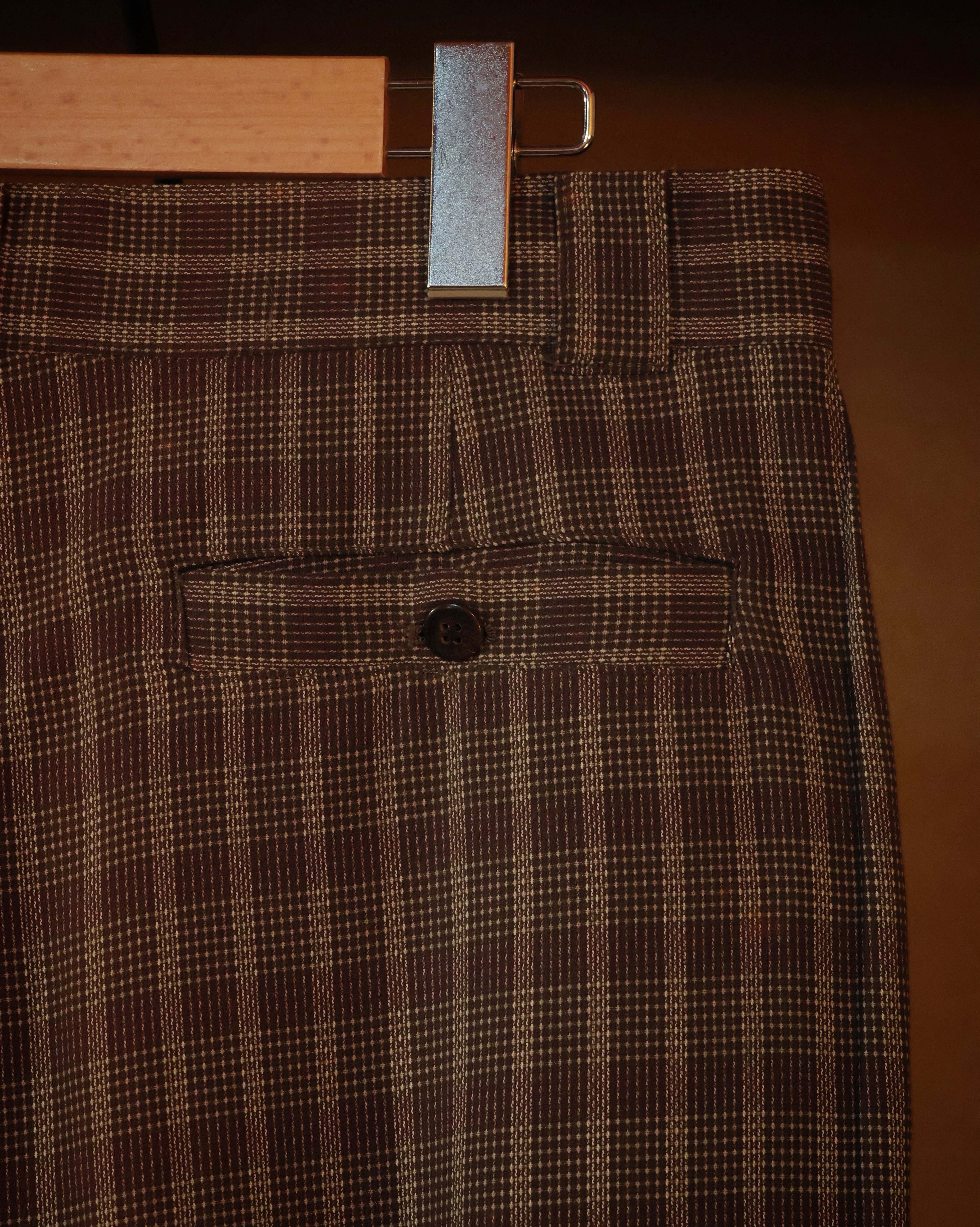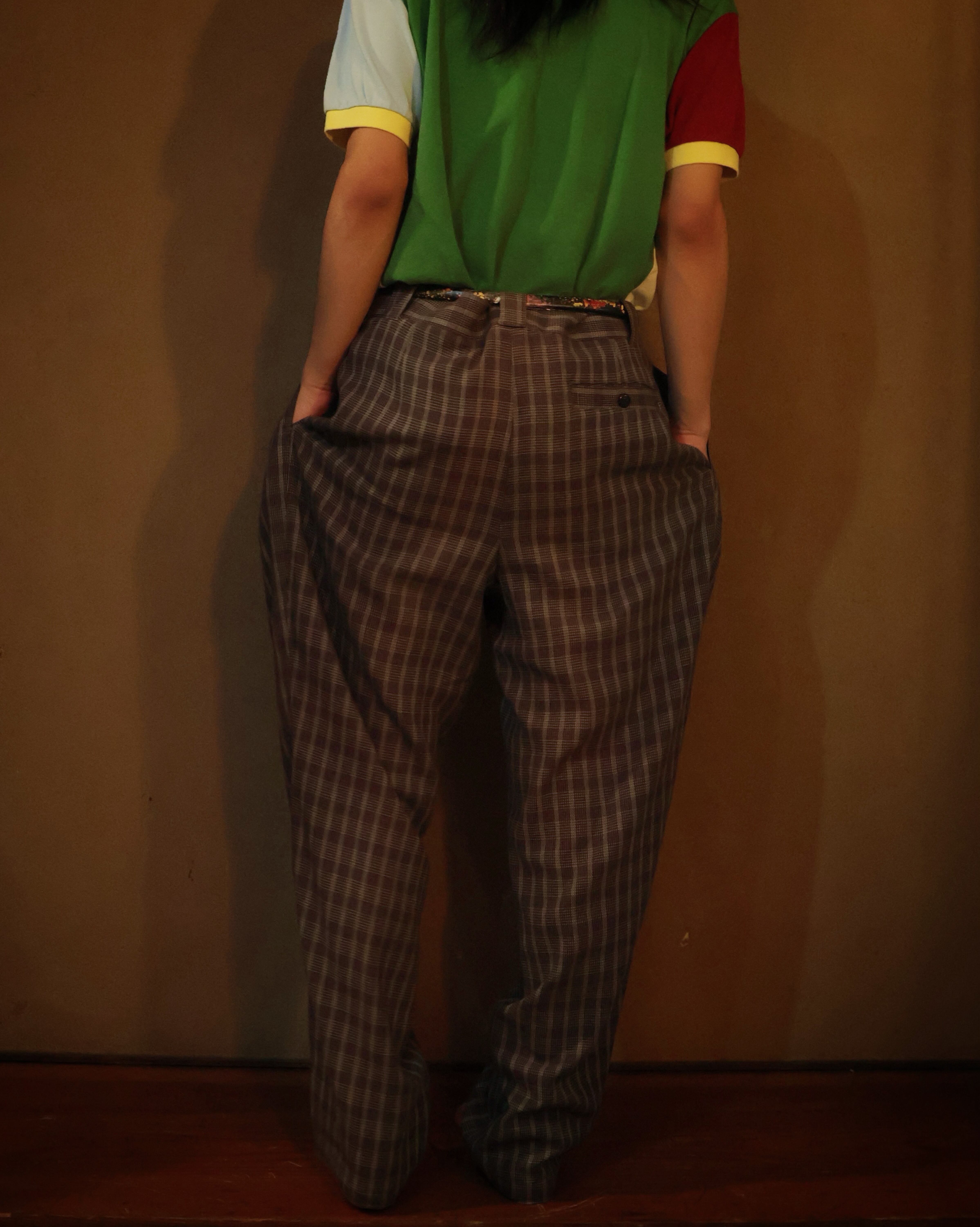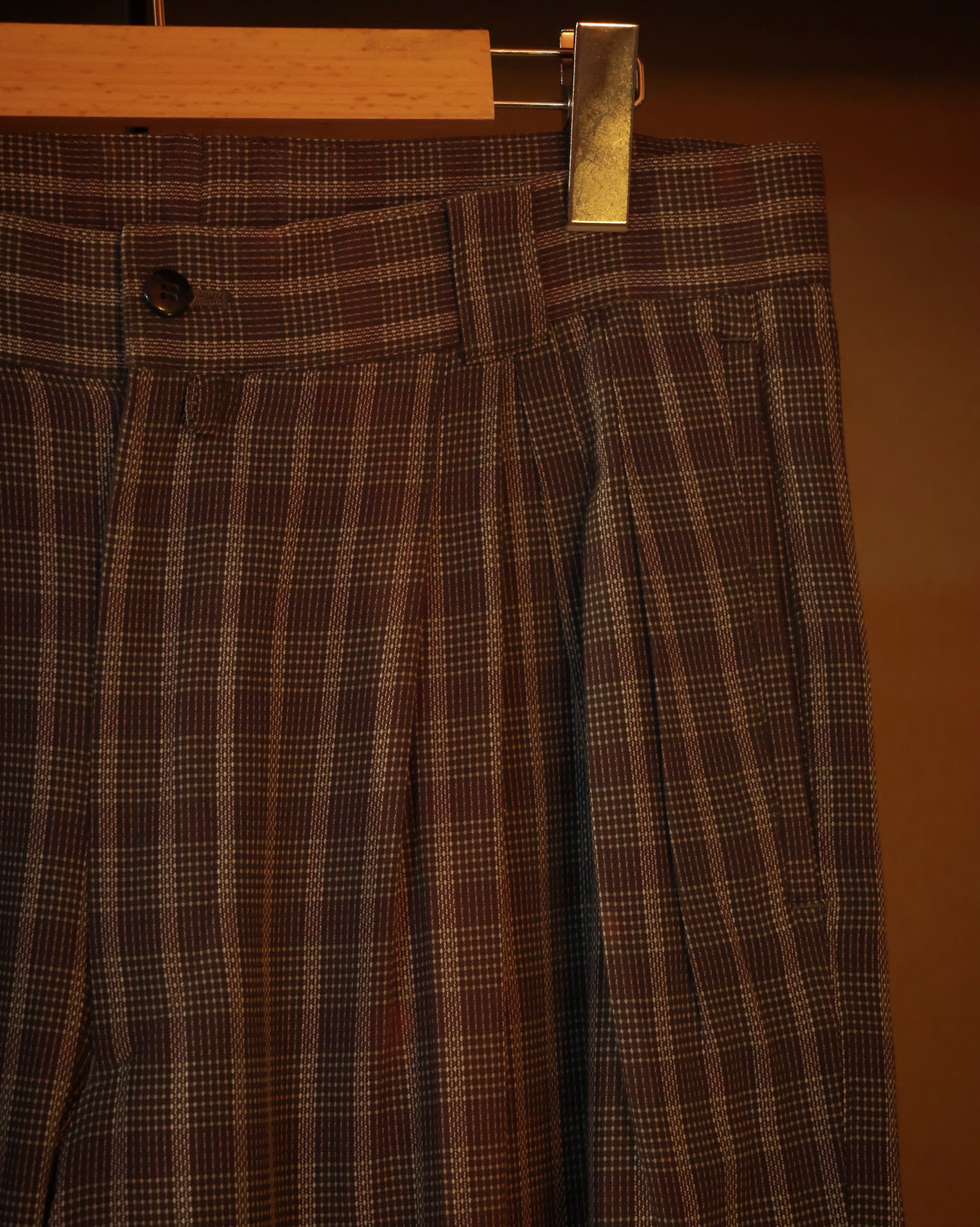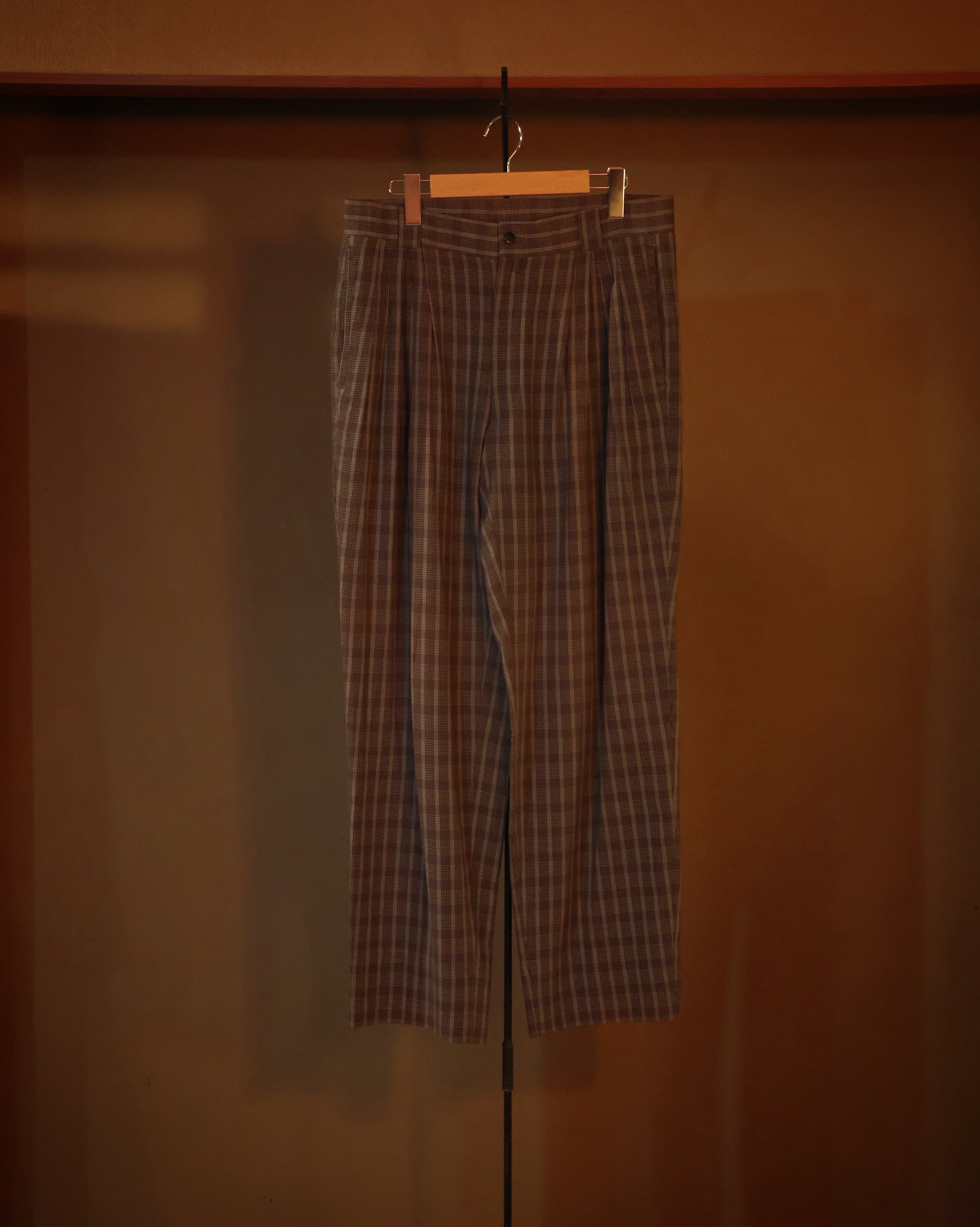 薄手の生地で裏地も無い、夏仕様のチェックスラックス。