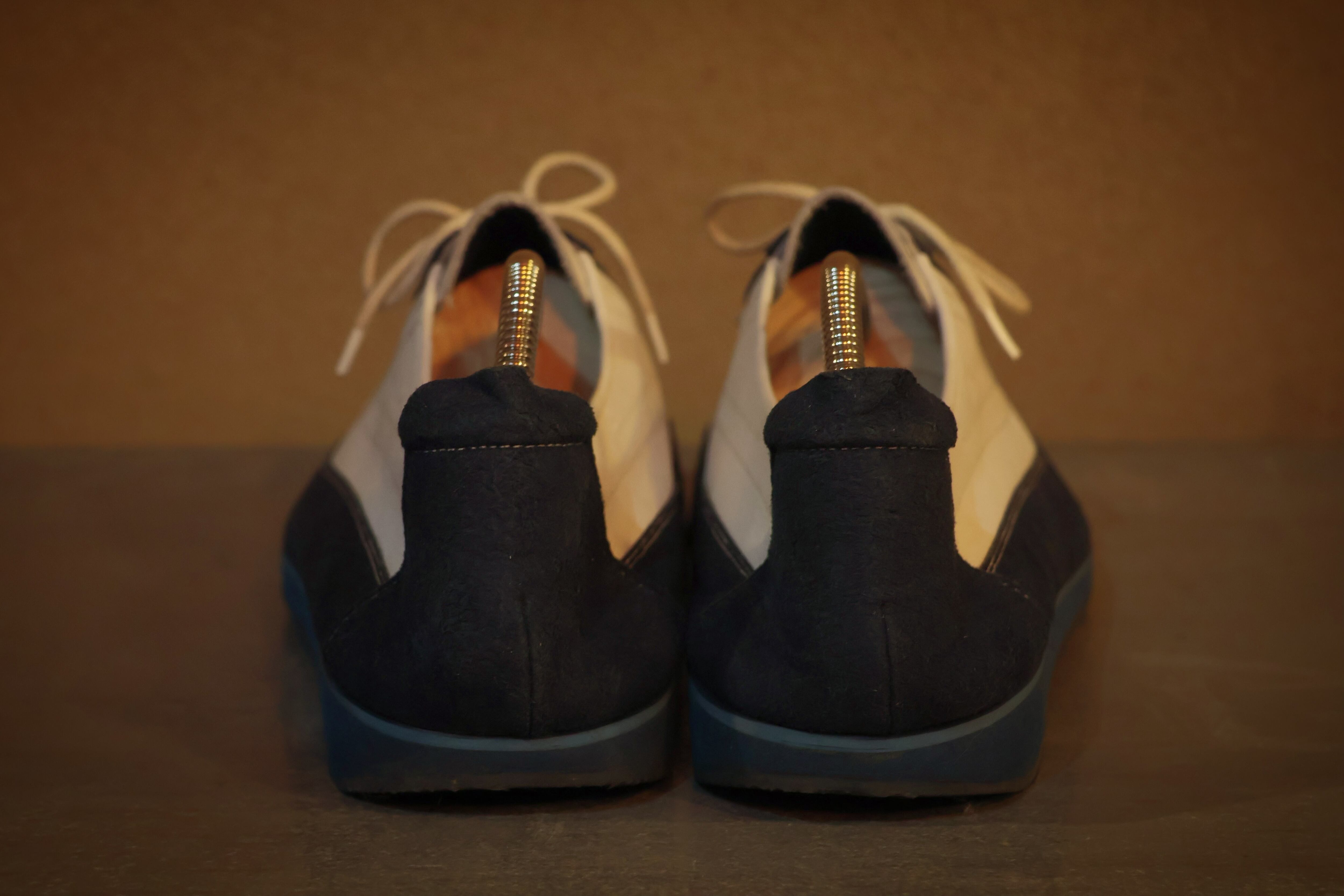 ブルースウェードとホワイトのスムースレザーのツートンカラー。