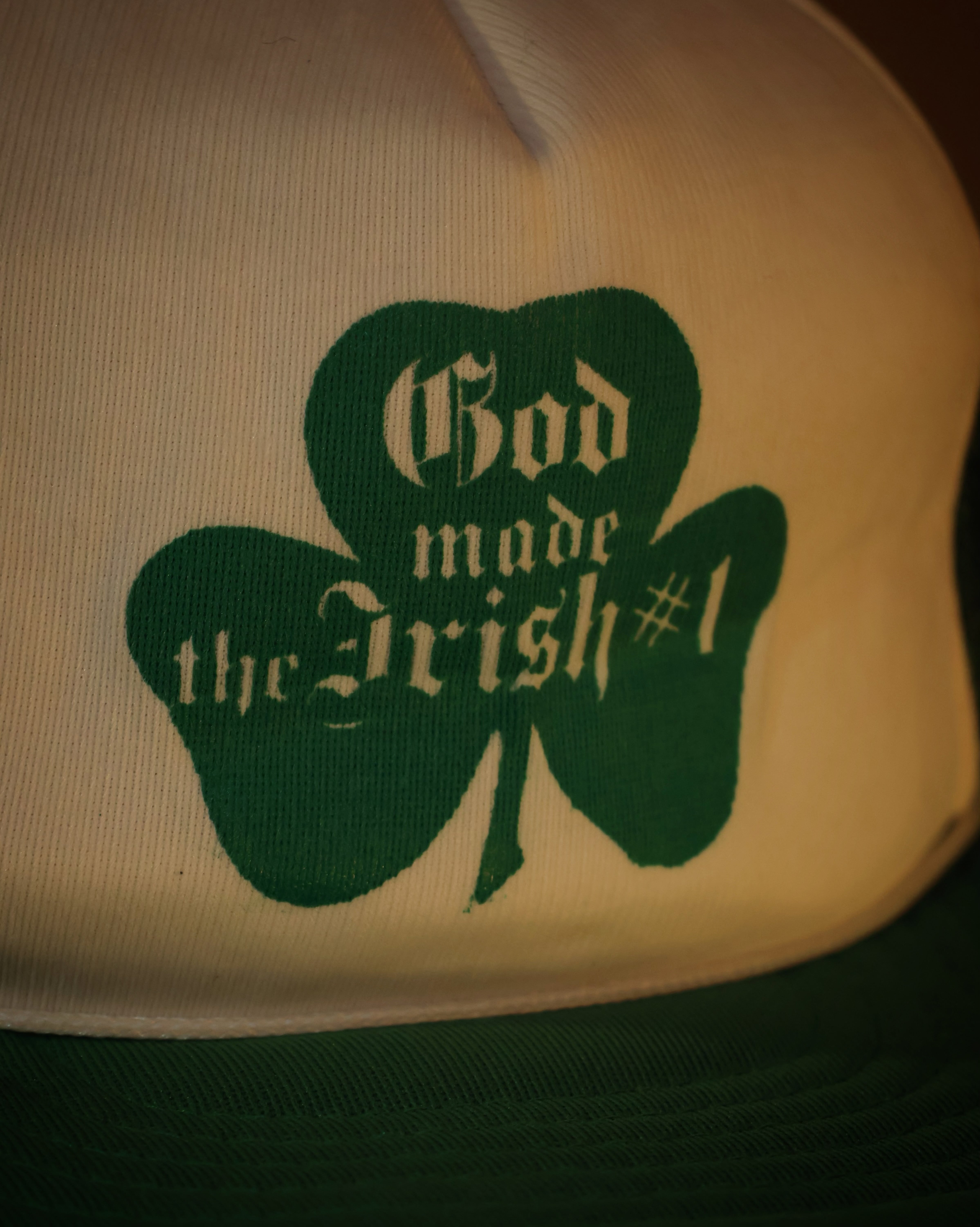 クローバーと文字のデザインがイカす、良いデザインのメッシュキャップ。