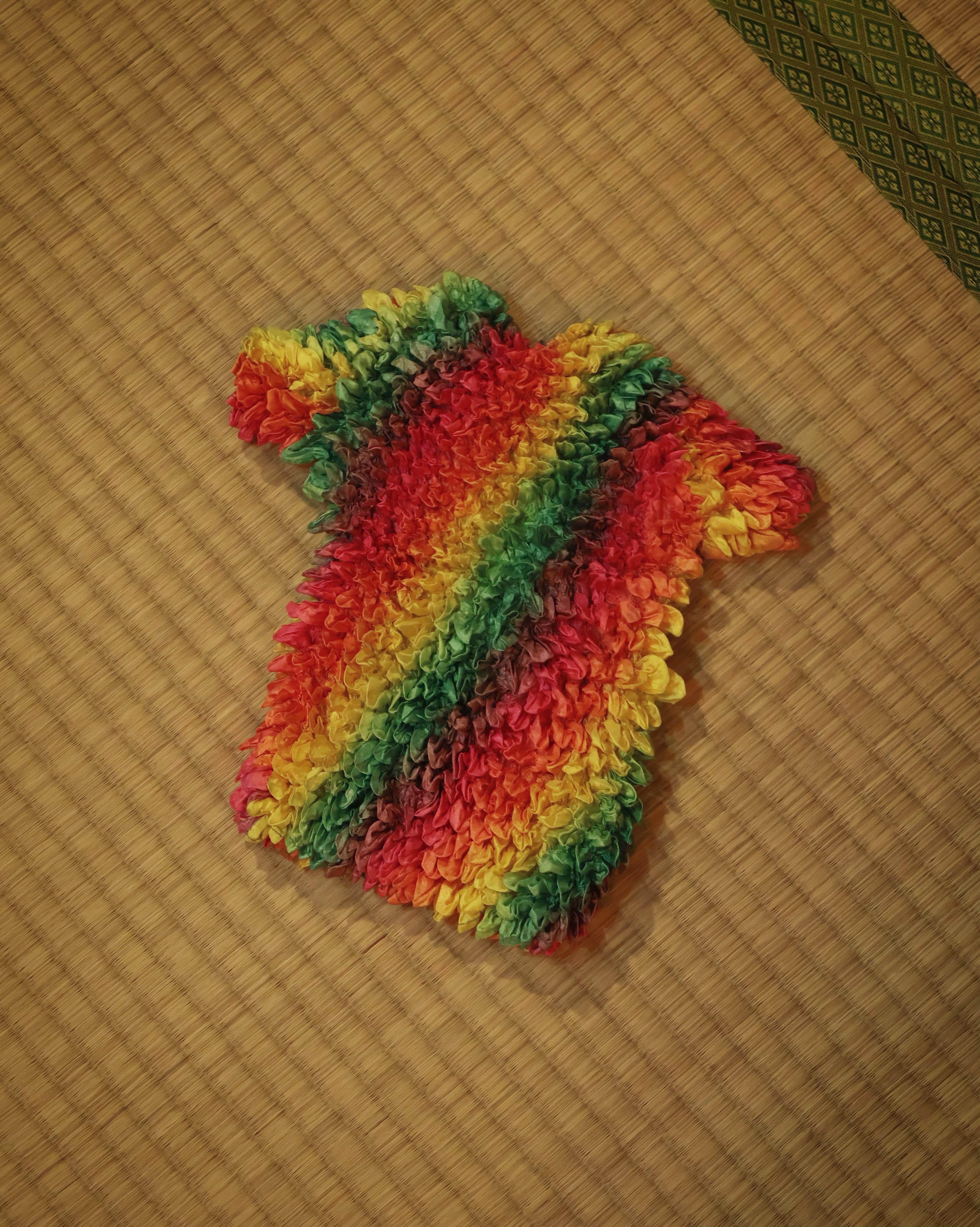 タイダイ染めみたいなレインボーのポップコーントップス。