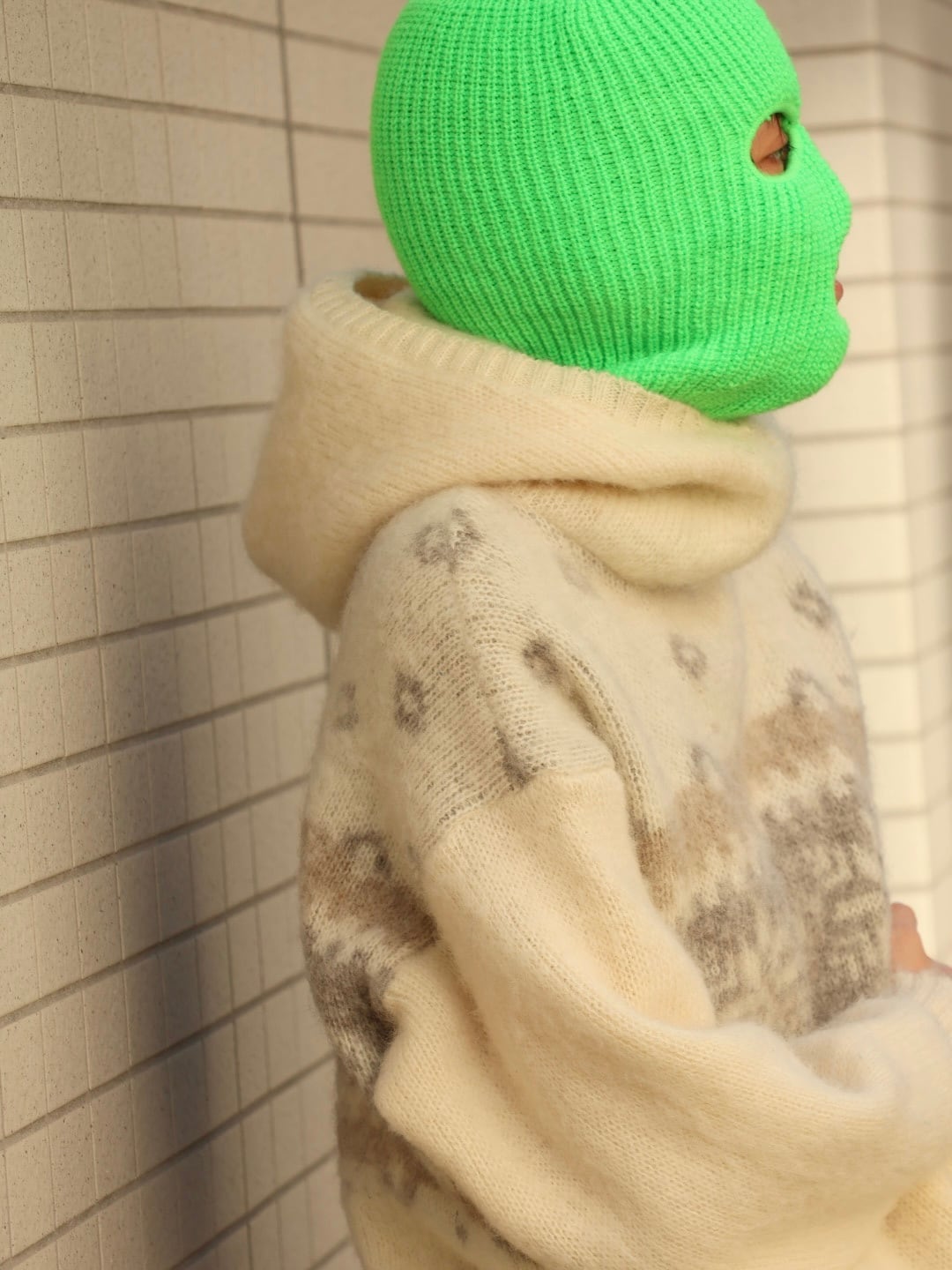ネックが高く顔部分だけポッカリ穴が空いたようなデザイン。これがまた可愛いんですよね。